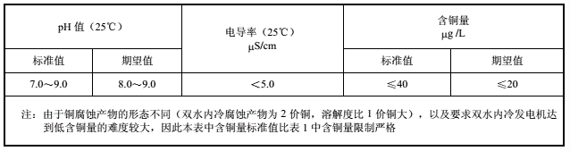 2、雙水內(nèi)冷發(fā)電機(jī)內(nèi)冷卻水水質(zhì)控制標(biāo)準(zhǔn)