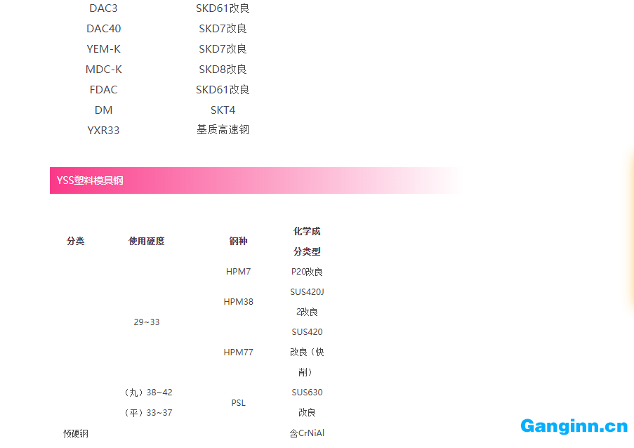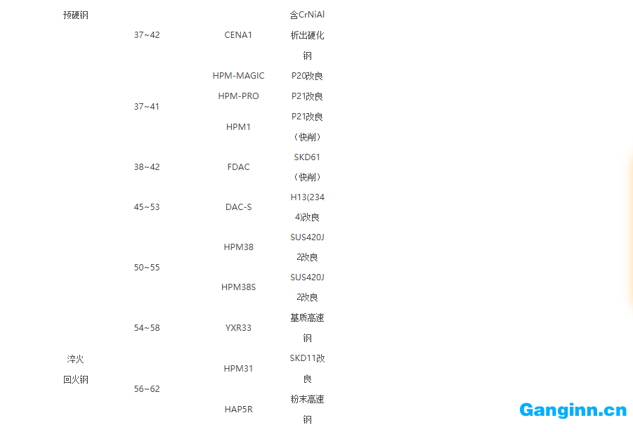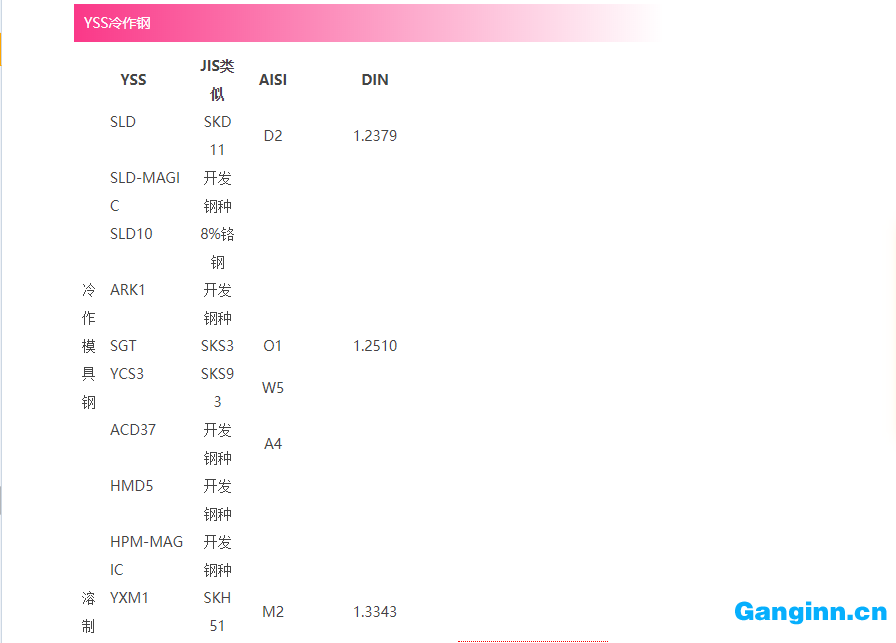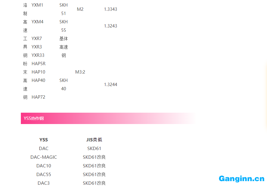 工具鋼牌號對照表