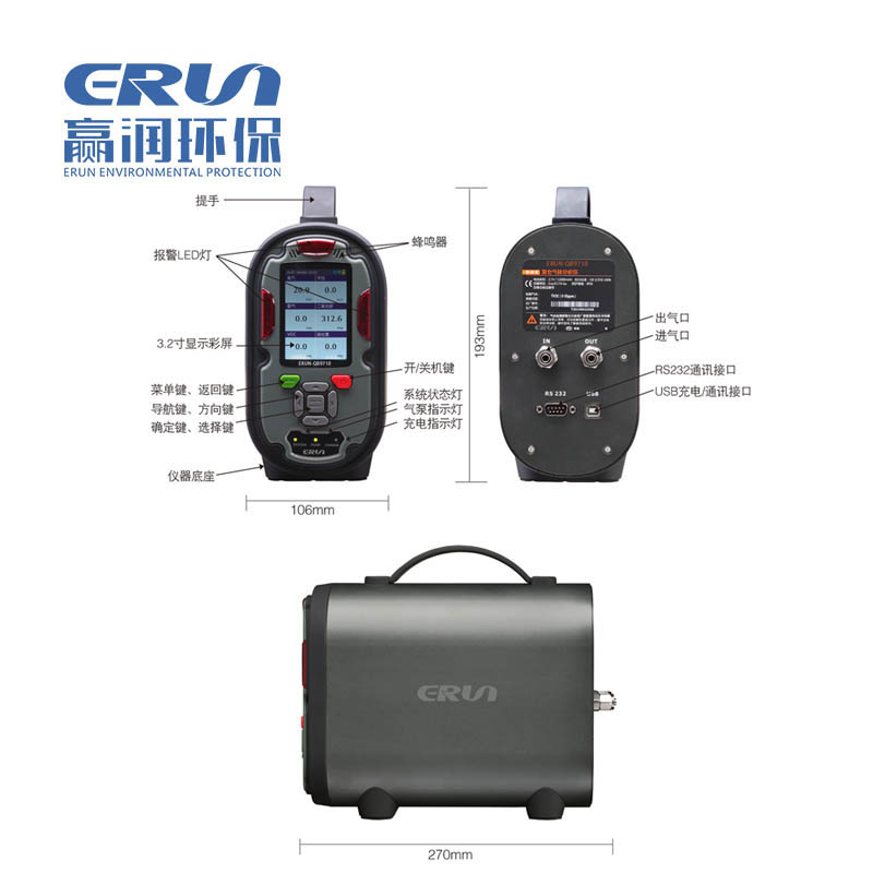 便攜式復(fù)合型多參數(shù)氣體分析儀ERUN-QB9610(內(nèi)置泵吸式)