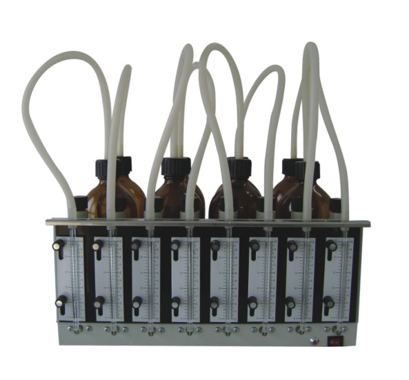 贏潤環(huán)保研發(fā)生產的ERUN-BY-2型直讀BOD5測定儀,把水樣以及二氧化碳吸收劑(NaOH)放入培養(yǎng)瓶內并密封,置于生化培養(yǎng)箱內,當被測樣品在20±1℃條件下恒溫進行五日培養(yǎng)后,有機物轉變成氮、碳和硫的氧化物,并產生二氧化碳氣體被氫氧化鈉吸收,而培養(yǎng)瓶內上部空間的氧氣不斷地供給水樣中微生物的需氧量,培養(yǎng)瓶內產生了壓力差,通過檢測玻璃管中汞的高度, 即可計算出水樣在規(guī)定測定期間內的BOD值。